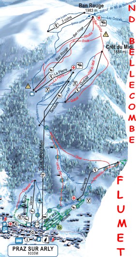 Praz sur Arly, aussi surnommé "Le Grand Terrain de Jeux" offre une diversité de payasage assez large: dans le haut du domaine, vous avez une vue panoramique 360° en haut de Ban Rouge, à 1983m, sur le Mont Blanc, les Aravis, le Beaufortain, le Val d'Arly, le Mont Bisanne... Les pistes sont soit sur le creux d'un torrent au bord des chalets d'alpages et des rochers (BasseCombe) ou en pleine nature vierge, avec des kilomètres de poudreuse à perte de vue (Boute, Rhodos, Ban Rouge) ou même encore sur une crête avec des vues incroyables (Ban Rouge, Quèzet, Crêt du Midi, Retour Praz sur Arly depuis Notre Dame de Bellecombe - les Saisies, plus communément appelée piste des Crêtes). Sur le bas du domaine (à partir des Tendues), la nature vous offre un ski en pleine forêt, avec des pistes qui sont quasiment des chemins (Olvet), des beaux murs (Bernards, Chars) et bien sur un secteur débutant (Combe Noire, Baby, Rosière...). Quant à elle, la station est sûrement la plus grande de l'Espace Diamant, elle est très concentrée mais bémol: le front de neige est un peu éloigné du village: on peut y accéder soit par des petits chemins qui longent l'Arly ou en voiture.